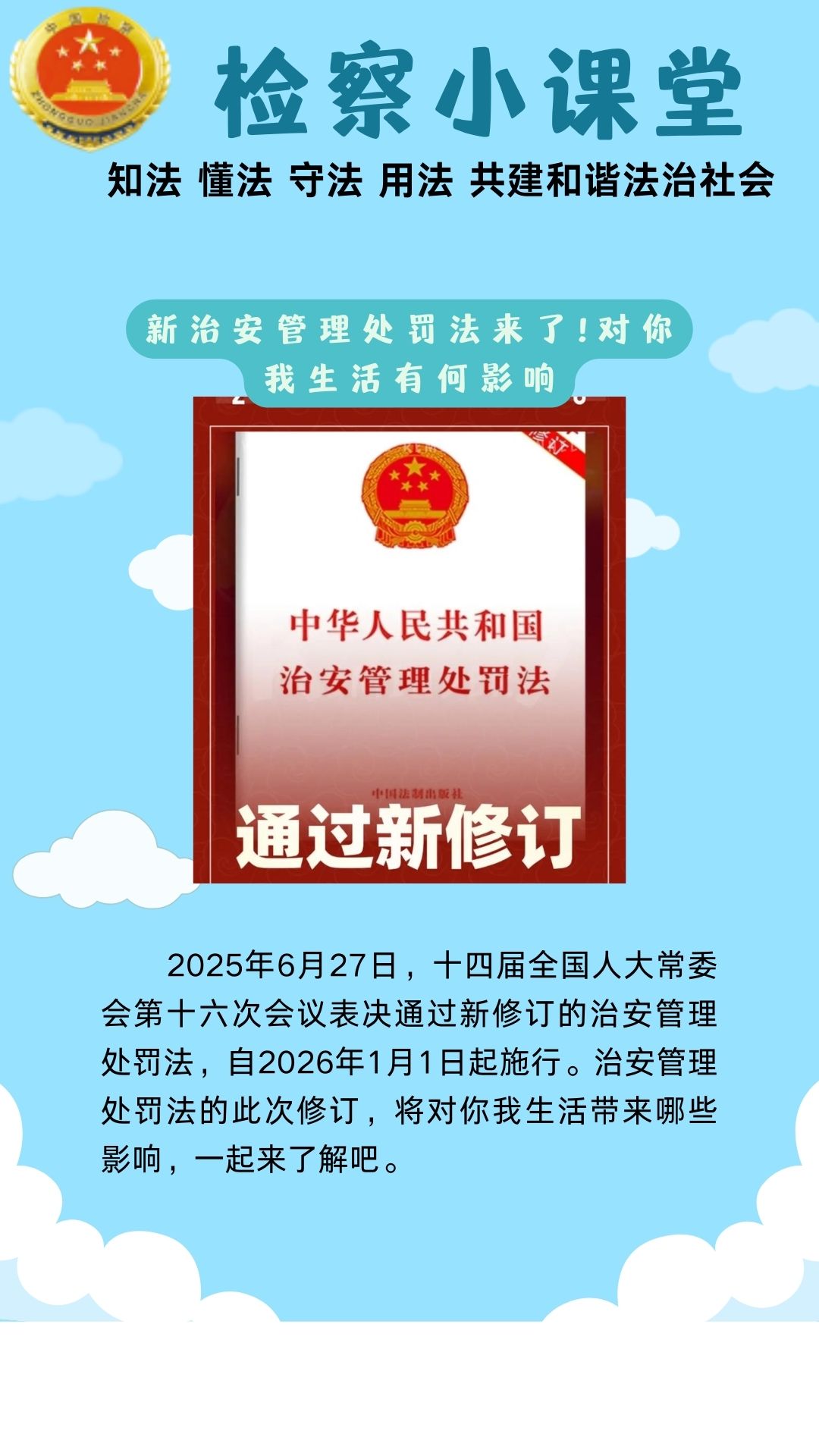 【检察小课堂】新治安管理处罚法来了!对你我生活有何影响