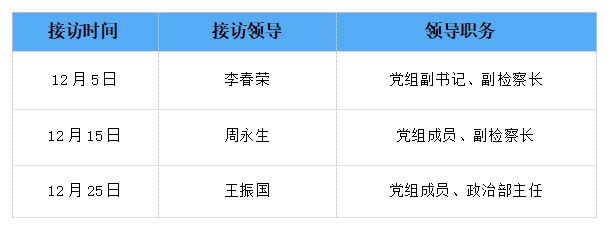 金昌市人民检察院2025年12月院领导公开接访日公告