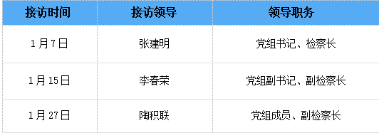 为进一步规范市检察院信访工作,提升人民群众诉求表达便利性,现将2026年1月市检察院院领导接访日公告如下:
